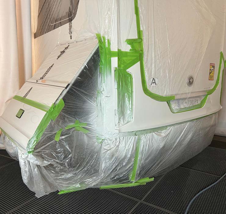 Wir übernehmen auch anspruchsvolle Instandsetzungen – etwa an GFK-Außenwänden, Kunststoffteilen oder Aluminium-Außenhaut – und finden Lösungen, wo Standardreparaturen nicht ausreichen.